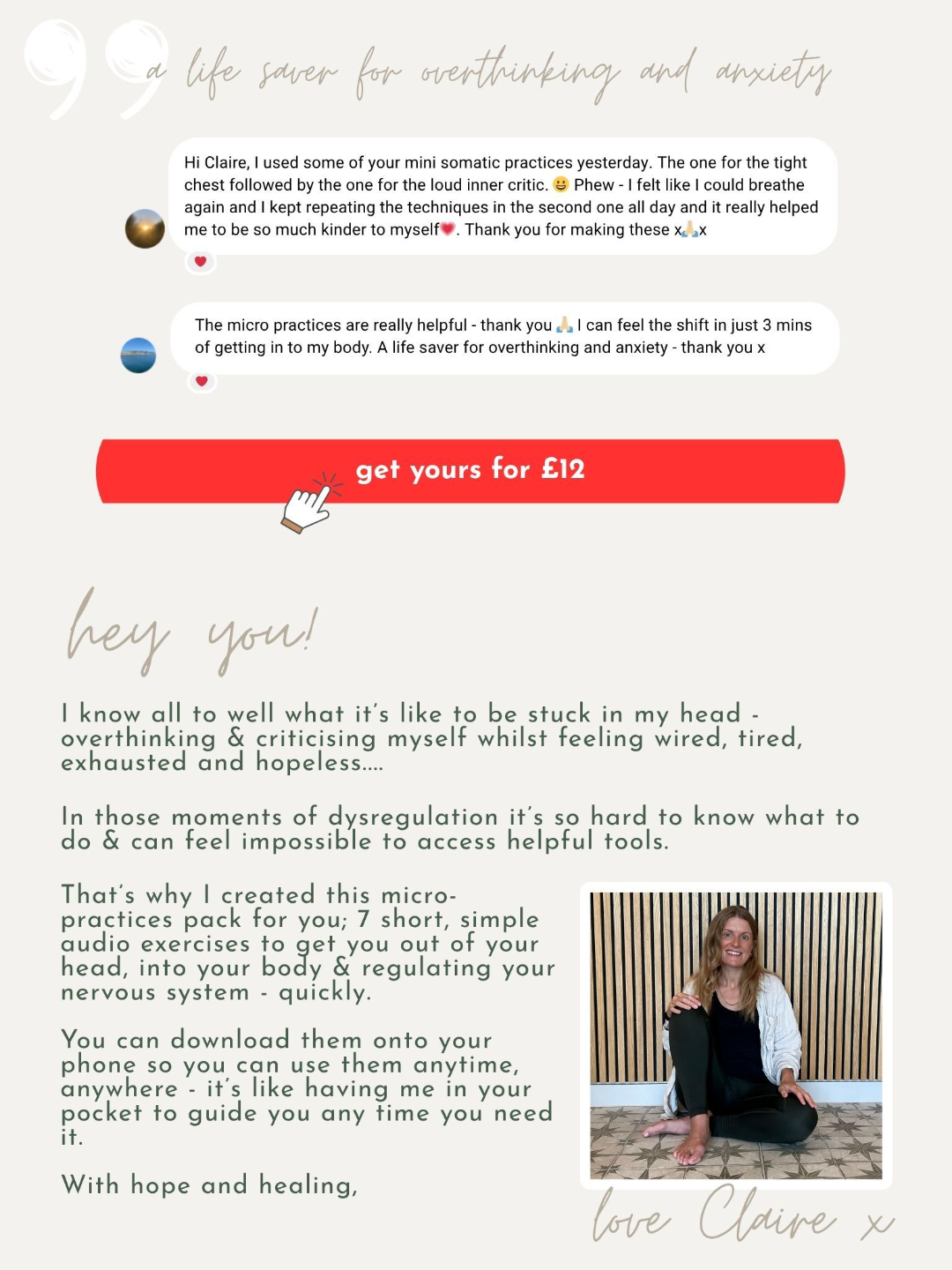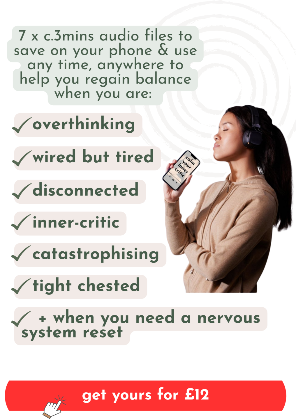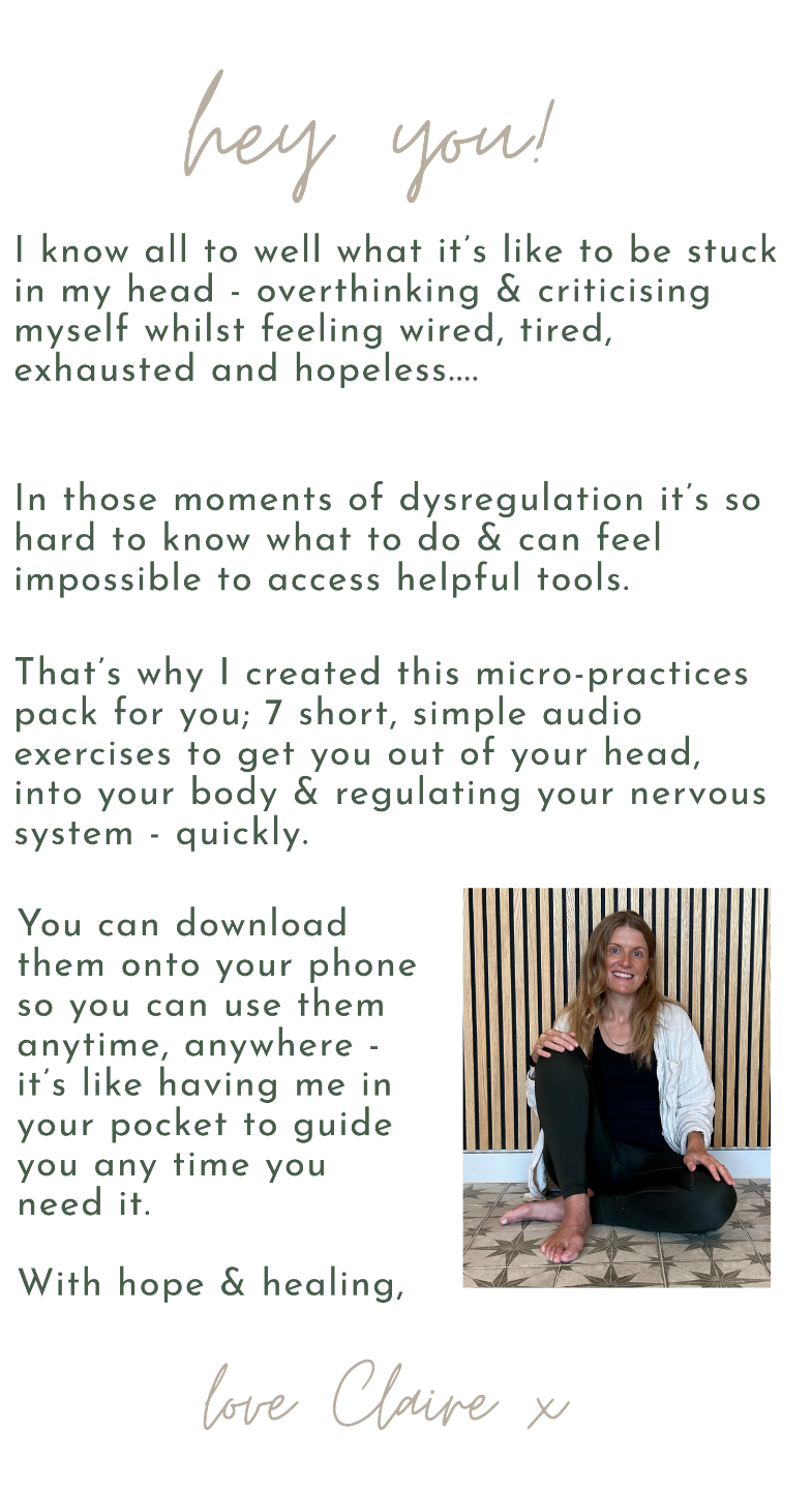 An audio for the moments you need it the most: • overthinking • inner-critic • shallow breathing • bracing for things to go wrong • disconnected • wired but tired + for a quick nervous system reset